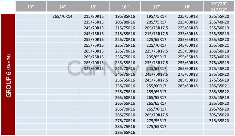 Моля, преди да поръчате текстилни вериги проверете дали размера на гумите ви отговаря на избраните вериги,посочени в таблица на 3-та снимка