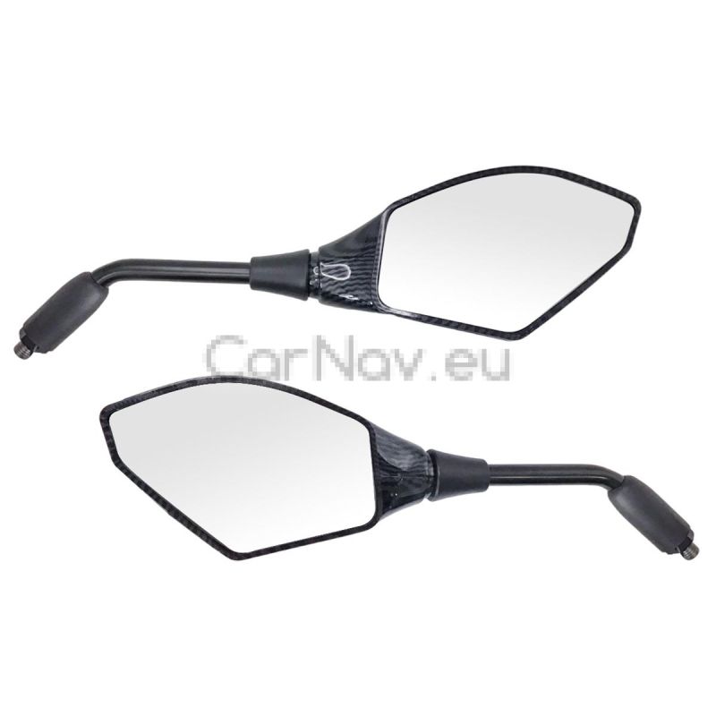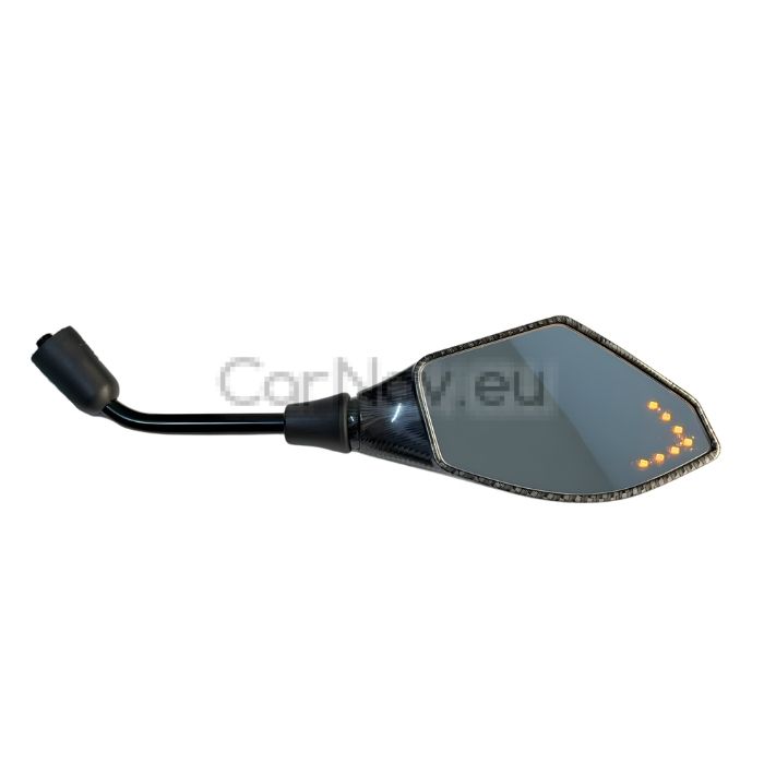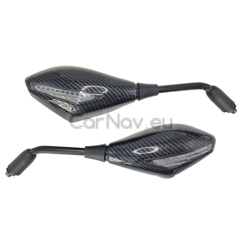 Модерни и функционални огледала за мотоциклет с вградени LED мигачи, съчетаващи отлична видимост и допълнителна безопасност на пътя. Благодарение на елегантния си дизайн с карбон ефект, те придават спортна визия на всеки мотор.