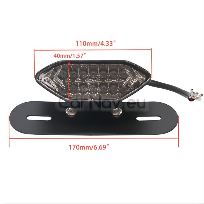 Мултифункционален LED стоп за мотоциклет, съчетаващ в едно компактно тяло стоп светлина, мигачи и осветление за регистрационен номер. Практично и модерно решение, което подобрява видимостта, безопасността и визията на вашия мотор.