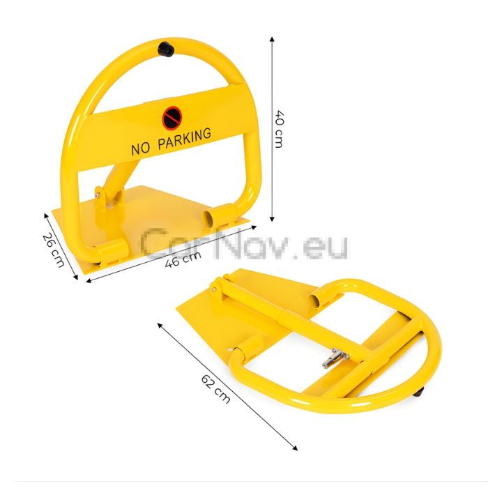 Яркият жълт цвят и надписът „NO PARKING“ осигуряват отлична видимост и ясно обозначаване на запазеното място.